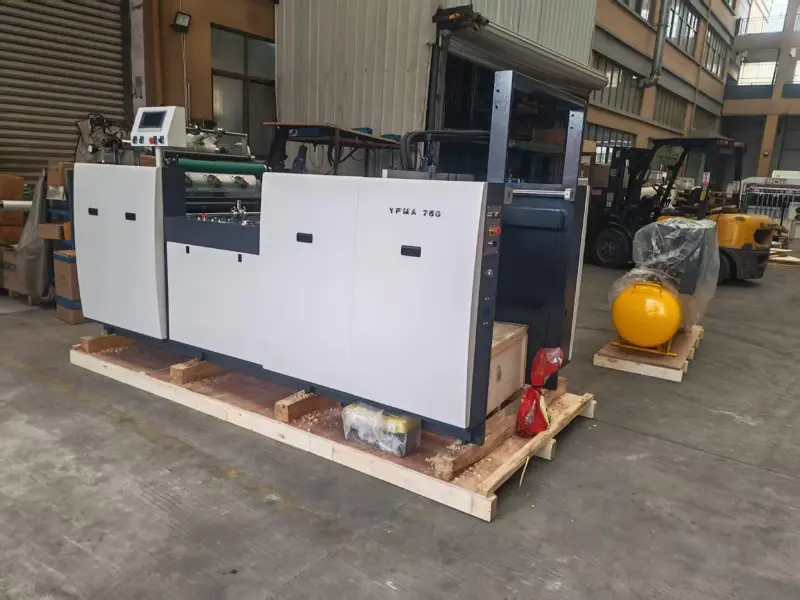 మేము YFMA-760ని ప్యాక్ చేస్తున్నాముఆటోమేటిక్ ప్రీ-కోటింగ్ లామినేటింగ్ మెషిన్, చివరగా, ఇది ఒక చెక్క క్రేట్లో ప్యాక్ చేయబడుతుంది.